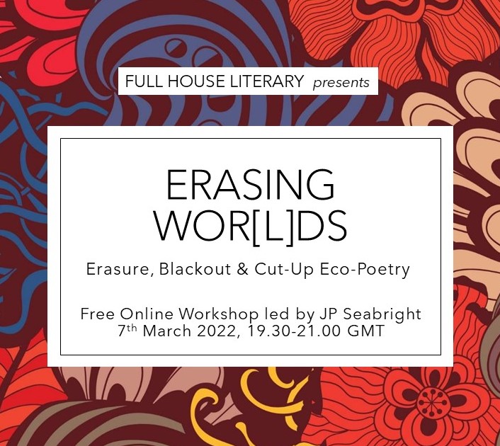 I will be delivering a workshop for Full House Literary Magazine on Monday 7th March 19.30 GMT on Erasure, Blackout & Cut-Up Eco-Poetry. Free to attend!